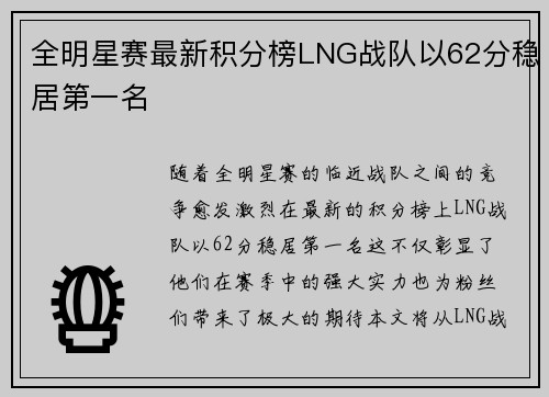 随着全明星赛的临近,战队之间的竞争愈发激烈。在最新的积分榜上,LNG战队以62分稳居第一名,这不仅彰显了他们在赛季中的强大实力,也为粉丝们带来了极大的期待。本文将从LNG战队的表现、团队协作、选手状态...